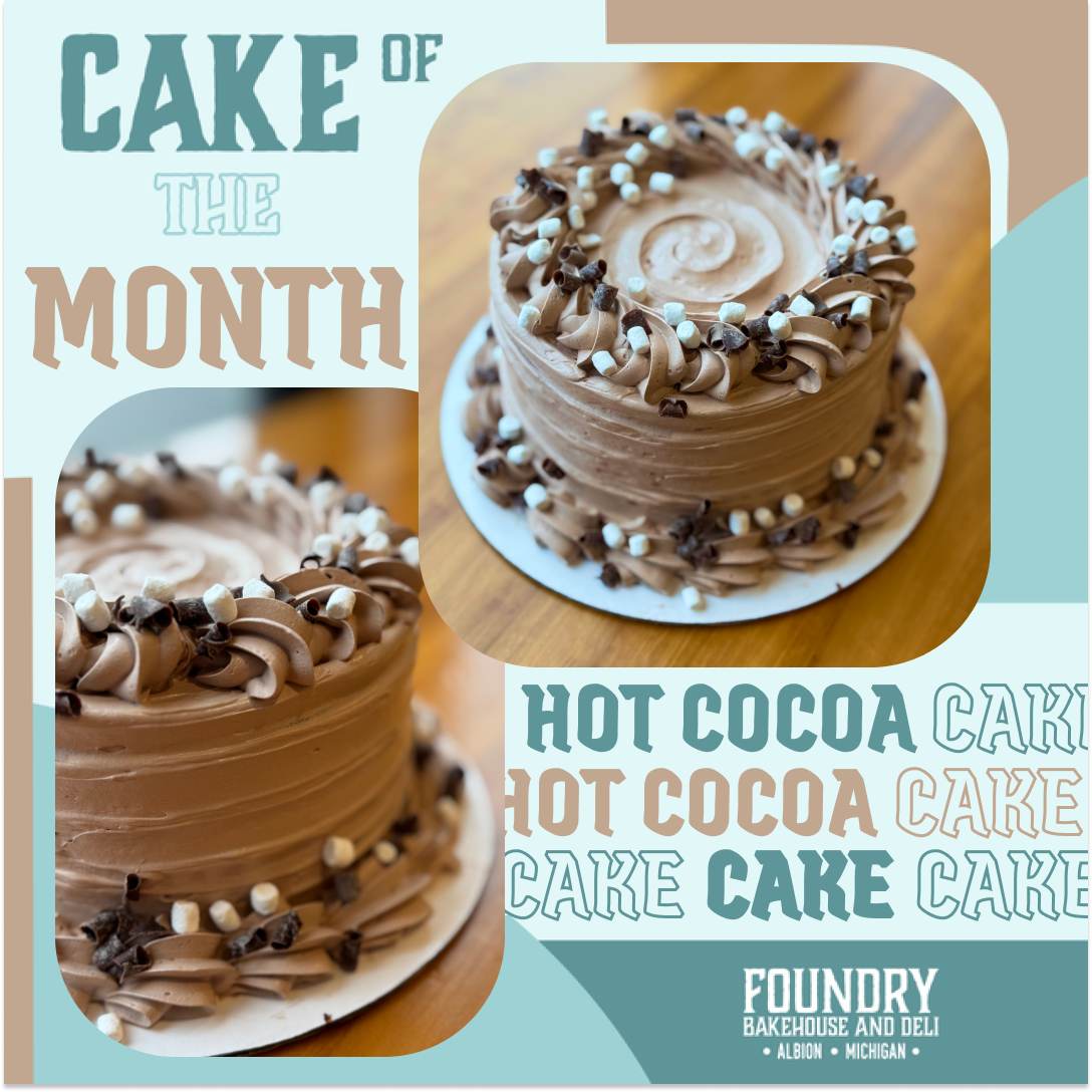 Rich, cozy hot cocoa cake layered with silky chocolate frosting and velvety finishing.