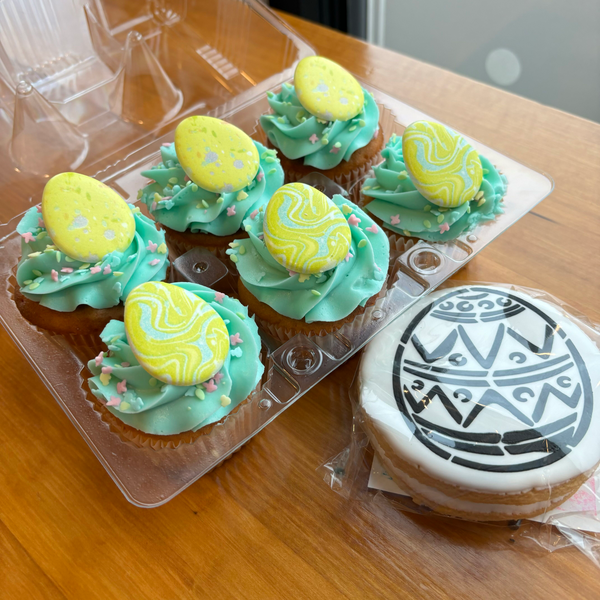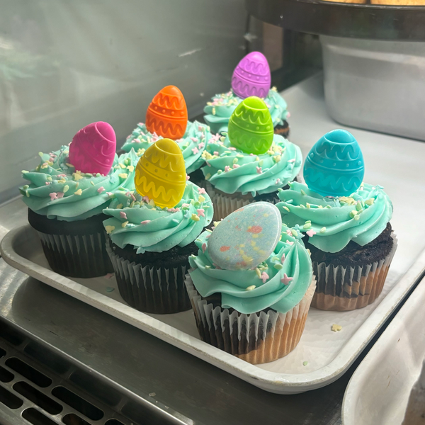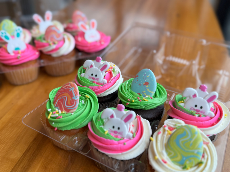 Our Easter cupcakes are baked fresh and decorated with bright spring colors and festive designs.