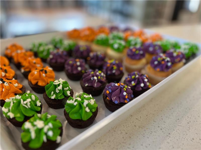 Delight your guests with Halloween cupcakes from Foundry Bakehouse, a bakery known for festive treats. Enjoy freshly baked custom and ready-made cupcakes topped with pumpkins, ghosts, and candy sprinkles for the perfect Halloween delight.
