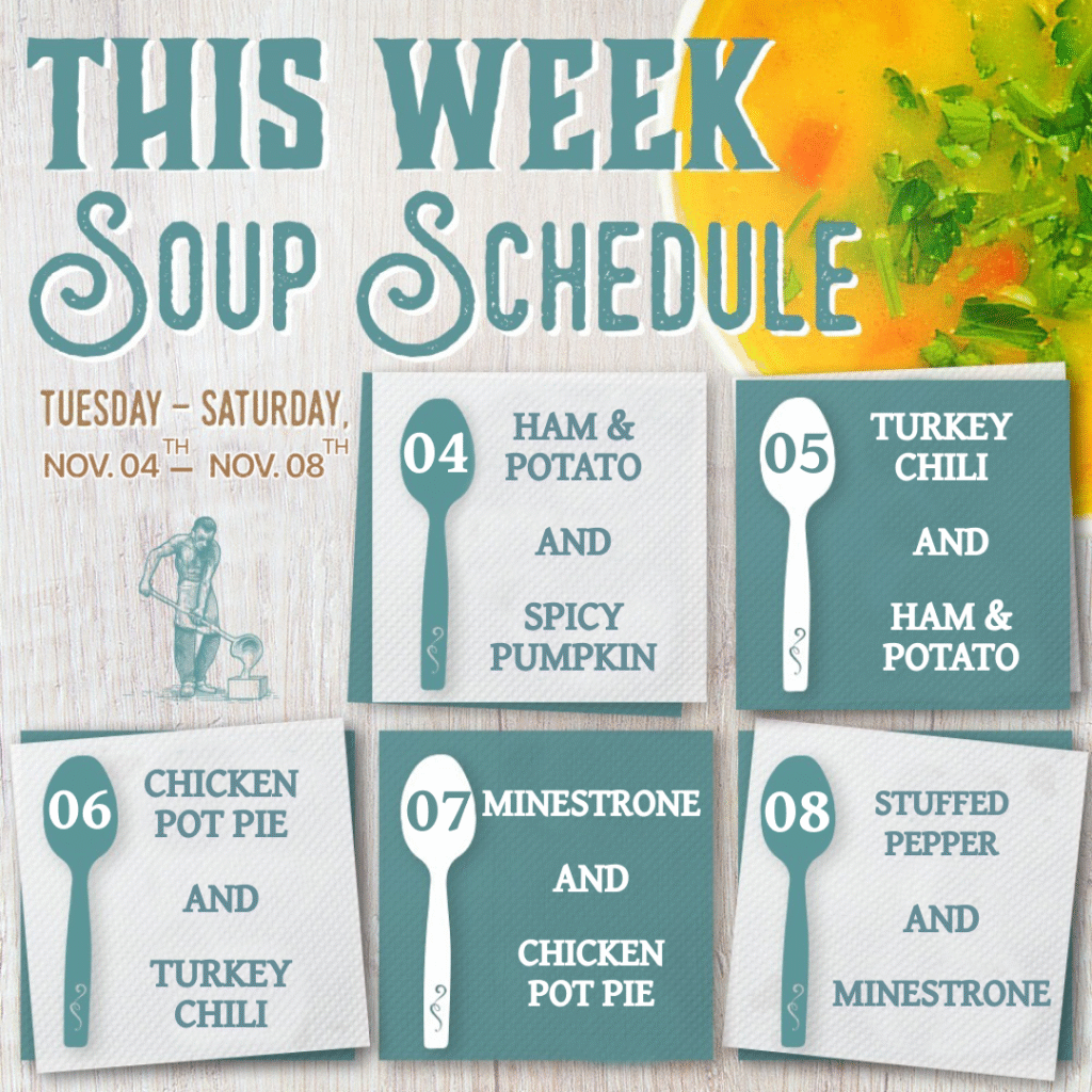 Special soups available from Nov 04 to Nov 08, Tuesday – Saturday