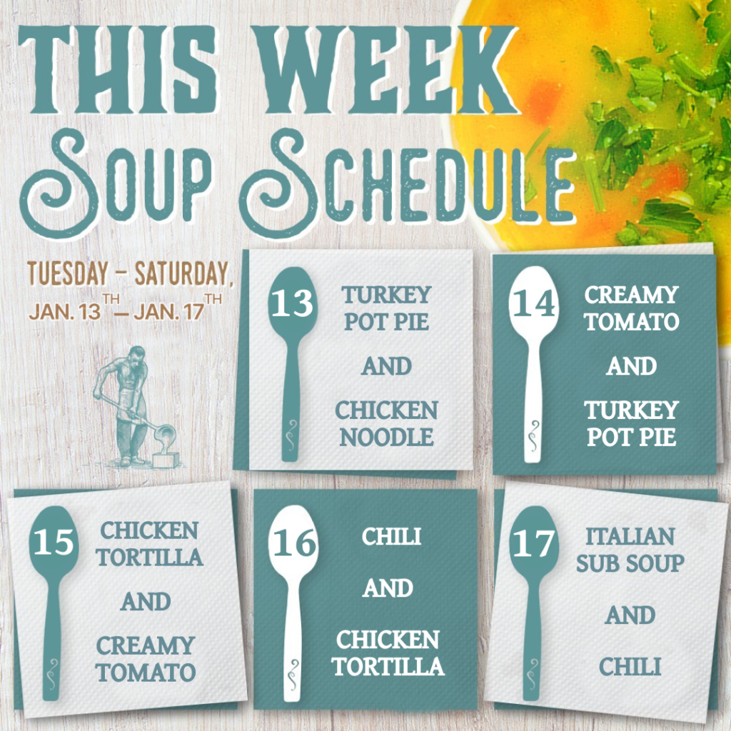 Special soups available from Jan 13 to Jan 17, Tuesday – Saturday